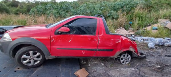 A carreta colidiu na traseira Strada e tombou para fora da pista. O motorista da caminhonete não se feriu. O condutor da carreta fugiu do local. Há suspeita de que a carreta seja roubada. Informações também foram repassadas para a PM.