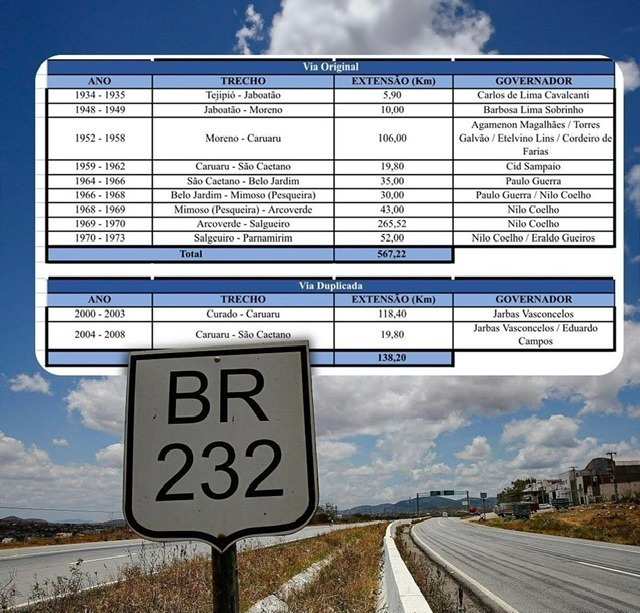 “Esse trecho central quando em 1936 já se chamava Rodovia Real, que ligaria a Vila do Recife à Freguesia de Cabrobó, quanto a parte técnica, a BR-232 foi a primeira pavimentação rígida do Brasil.” – diz Aurivalter.