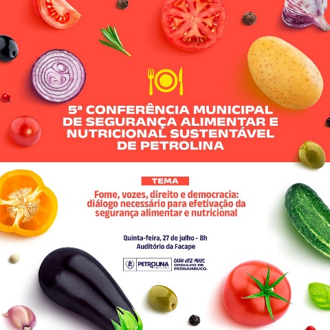 A Prefeitura de Petrolina, através da Secretaria de Desenvolvimento Social e Direitos Humanos (SEDESDH) e do Conselho Municipal de Segurança Alimentar e Nutricional (CONSEA) de Petrolina, irá promover a 5ª Conferência Municipal de Segurança Alimentar e Nutricional Sustentável, nesta quinta-feira (27). O evento acontece das 8h às 17h, no auditório da FACAPE.