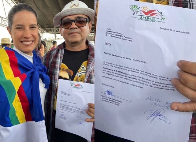 O líder comunitário Fabrício Alex morador do bairro Caminho do Sol, faz parte de Comissão de moradores que representam a comunidade, já que a associação de moradores está desativada, e ele que foi a festa da Missa do Vaqueiro em Serrita, e aproveitou para entregar “em mãos” um documento a Governadora Raquel Lyra.