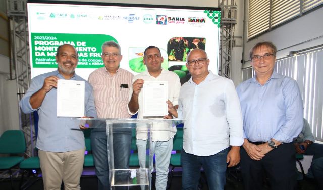 Convênios – Os convênios assinados na terça-feira (25) preveem investimentos de R$ 2 milhões, sendo R$ 1,4 milhão do Sebrae/BA, R$ 300 mil da Seagri e outros R$ 300 mil da Abrafrutas. Os técnicos vão oferecer orientação e formação, trabalhando em conjunto com aqueles que plantam para o monitoramento das ameaças.