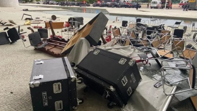 Informações relevantes: Mais de 400 criminosos já foram presos pelas forças de segurança após os atos de vandalismo e destruição; Lula decretou intervenção federal no Distrito Federal pelo “grave comprometimento da ordem pública” até o dia 31 de janeiro; Ataques foram repercutidos pelo mundo inteiro em veículos de imprensa e autoridades, que manifestaram solidariedade e apoio à democracia brasileira e ao atual governo.