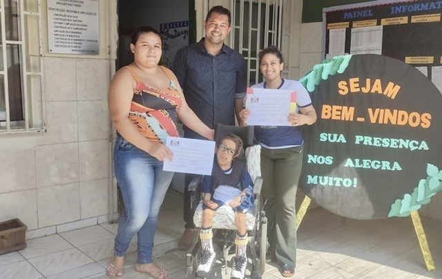 “Fiz a entrega dessas moções de aplausos na Escola Assis Chateaubriand, a mãe do aluno Pedro Henrique e a profissional, a professora de apoio Anna Dalete e também a equipe gestora. Pedro Henrique emocionou a todos que estavam presentes no Ginásio de Esportes e também quem teve a oportunidade de assistir o vídeo pelas redes sociais. Foi algo incrível a participação do aluno Pedro Henrique nas festividades juninas.” – disse o vereador.