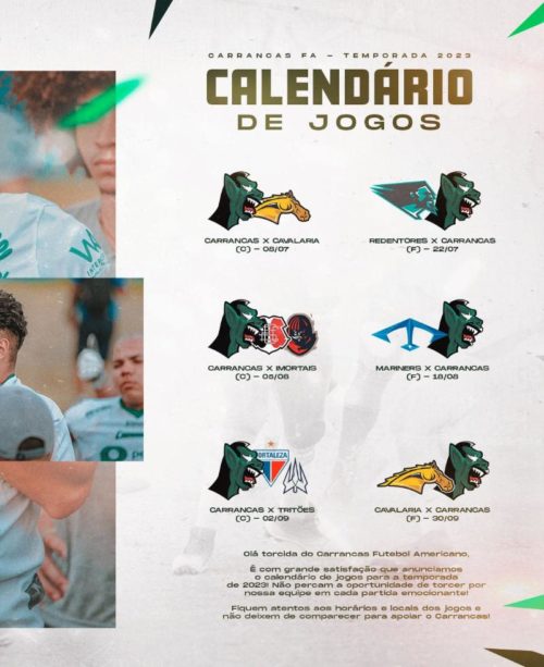 O Carrancas Futebol Americano já sabe quem serão seus adversários na temporada 2023 da Liga BFA – Conferência Nordeste. O time que representa o Vale do São Francisco fará sua estreia no dia 8 de julho, diante da torcida, contra a Cavalaria 2 de Julho (BA).