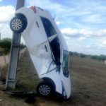 Incrível: Vereadora pernambucana perde controle e carro fica ‘em pé’ escorado em um poste