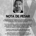 Foi com enorme tristeza que recebemos a notícia do falecimento de JOSÉ HELDER VIEIRA DE SOUZA, conhecido como HELDER DO BAR.