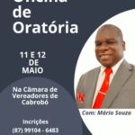 Dias 11 e 12 será realizada mais uma Oficina de Oratória com Mário Souza, a oficina será realizada na Câmara de Vereadores de Cabrobó.