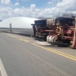 Carreta com pá eólica tomba e interdita trecho da BR 316, em Ouricuri