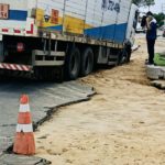 Caminhão atola em obra inacabada da Compesa na Avenida da Integração em Petrolina
