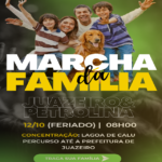 A Marcha da Família ocorrerá na cidade de Juazeiro, às 08h00, na manhã do dia 12 de outubro, Feriado Nacional.