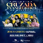 O sábado (23) será de muito louvor e adoração ao Nome do Deus Vivo e Todo Poderoso, com a Primeira Cruzada Evangelística de Missões...