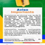 Secretaria de Assistência Social de Cabrobó comunica que nesta quarta (13) não haverá atendimento...