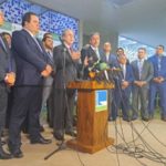 Durante coletiva, realizada nesta quarta-feira (23), o líder do União Brasil na Câmara, deputado Elmar Nascimento (BA), o presidente nacional do partido, deputado Luciano...
