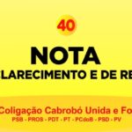A coligação Cabrobó Unida e Forte vem por meio desta nota ESCLARECER os fatos ocorridos no último dia 8 de novembro, no bairro Pedro...