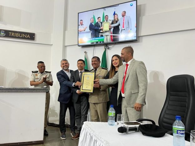 O Coronel PM Valter Araújo, externou seus sinceros agradecimentos ao Presidente da Câmara de Irecê, ao Vereador Figueiredo pela indicação e demais membros do Poder Legislativo Municipal, pela concessão desta estimada honraria.