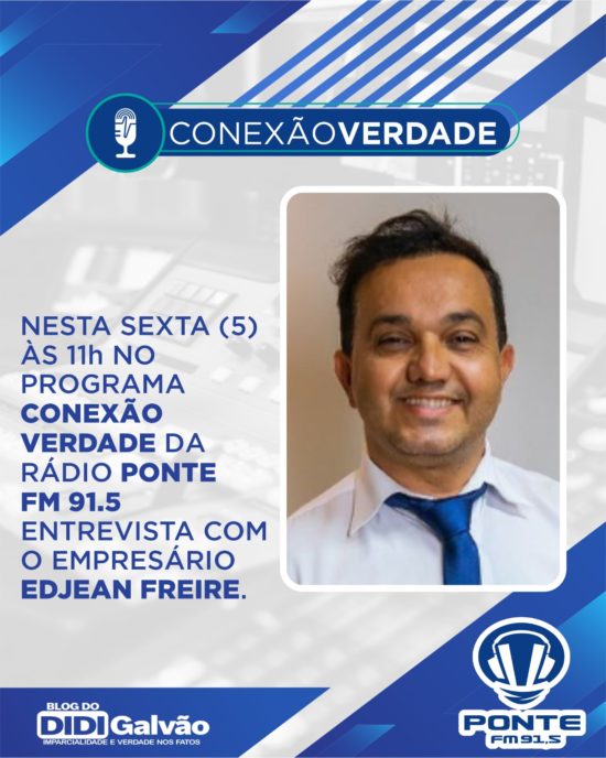 O neto do ex-prefeito de Cabrobó ‘João de Né Grande’, Edjean Freire que é empresário do ramo da construção civil em Petrolina e que tem despertado para a política, estará às 11h desta sexta-feira (05) participando do Programa Conexão Verdade da Rádio Ponte FM 91.5, programa apresentado por Didi Galvão.