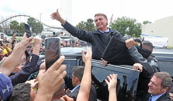 Mais cedo, ao sair de seu hotel, o presidente lembrou que, nas eleições de 2018, cerca de 90% dos votos dos brasileiros na região foram para ele.
