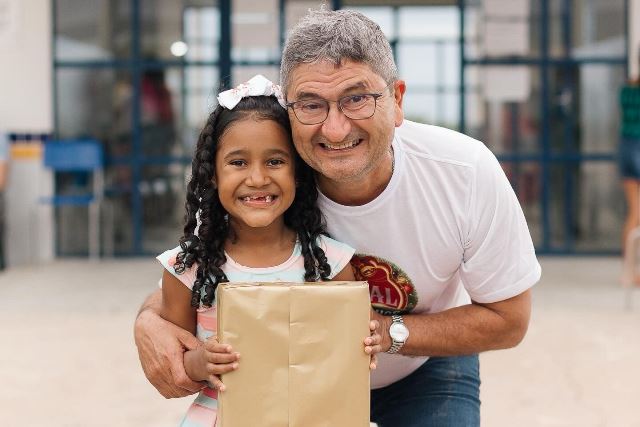No primeiro dia do “Natal dos Sonhos”, milhares de crianças do Projeto Fulgêncio foram agraciadas com entrega de presentes, guloseimas, atividades como pula-pula e a oportunidade única de tirar fotos com o Papai Noel. A distribuição aconteceu na Agrovila 15, contando com a presença do prefeito George Duarte, secretários, vereadores e lideranças comunitárias.