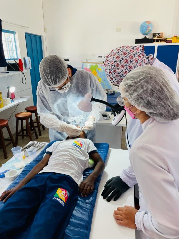 Foi realizado um momento de bate-papo com os pais e responsáveis para explicar a responsabilidade que eles precisam ter em relação a sua saúde bucal e dos seus filhos. Além disso, foi feito ação de prevenção com os alunos, mostrando como ter uma boa escovação, aplicação de flúor e atendimentos com a técnica de Tratamento Restaurador Atraumático (ART).