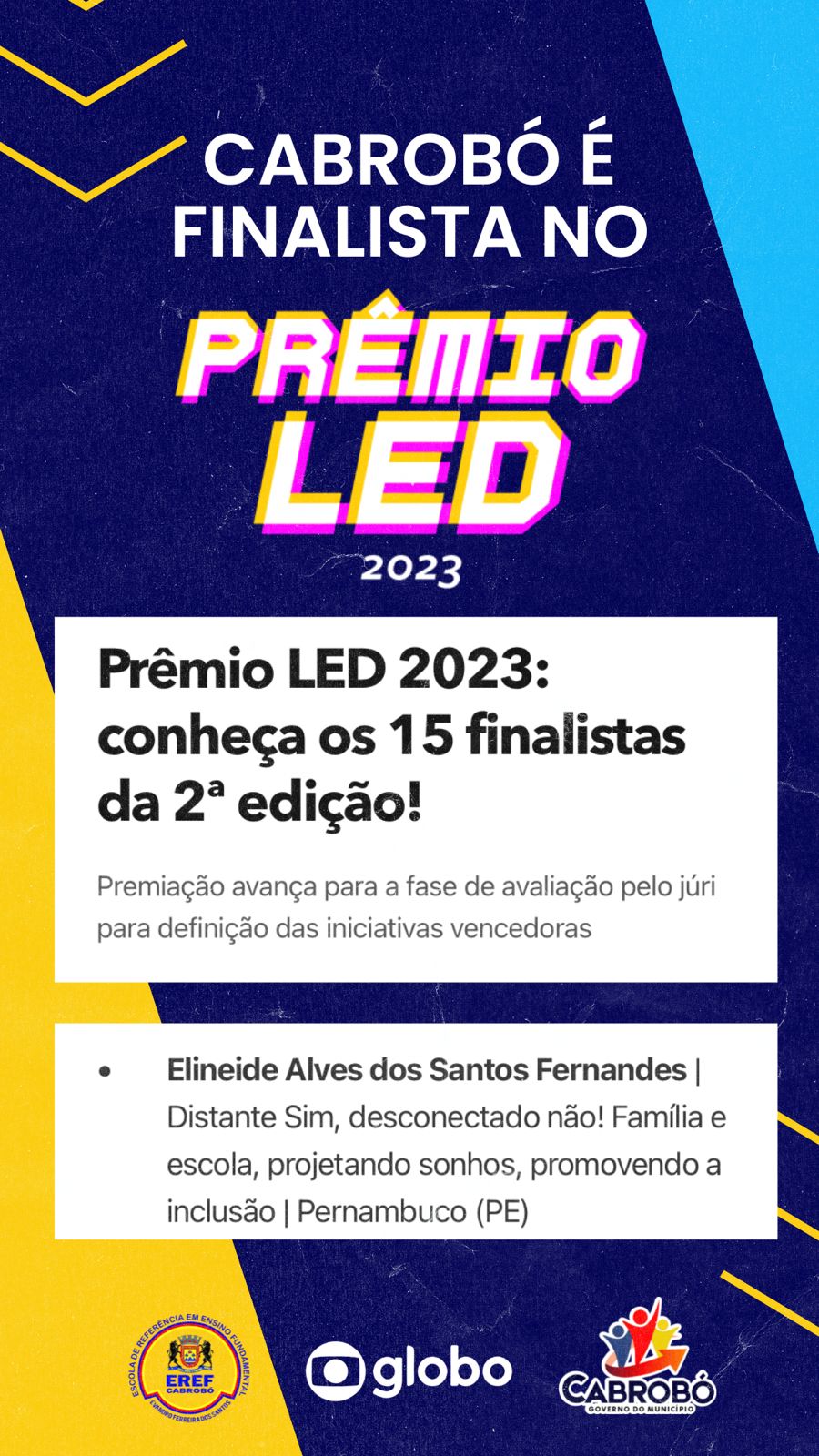 Na noite desta quinta-feira(02), o município recebeu a excelente notícia de que a Escola Municipal Evandro Ferreira dos Santos está entre os 15 finalistas do Prêmio LED da Rede Globo.