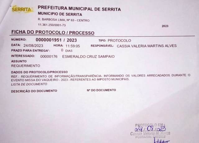 Esmeraldo Cruz, resolveu pedir informações, pois, segundo ele: “O prefeito Aleudo falou publicamente que o evento Missa do Vaqueiro traria lucros aos cofres públicos“.