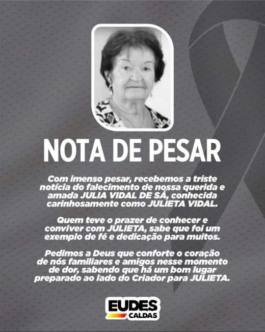 Com imenso pesar, recebemos a triste notícia do falecimento de nossa querida e amada JULIA VIDAL DE SÁ, conhecida carinhosamente como JULIETA VIDAL.