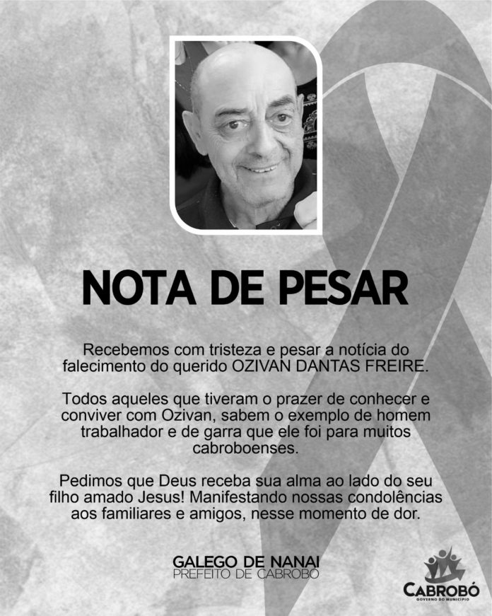 Recebemos com tristeza e pesar a notícia do falecimento do querido OZIVAN DANTAS FREIRE.