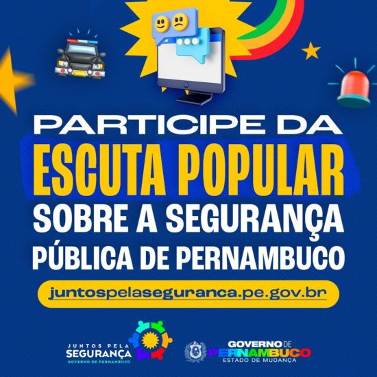 O Governo de Pernambuco lançou a política pública Juntos pela Segurança e iniciou também, através do site juntospelaseguranca.pe.gov.br, uma escuta popular. Qualquer pernambucano e pernambucana pode acessar essa página, preencher um formulário virtual e dar sua opinião em relação à melhoria da segurança em nosso Estado.