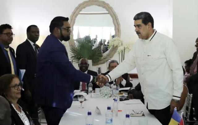 O ditador da Venezuela, Nicolás Maduro, e o presidente da Guiana, Irfaan Ali, reuniram-se nesta quinta-feira (14) pela primeira vez para tentar estabelecer um diálogo sobre a disputa pelo território de Essequibo.