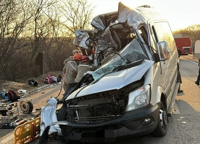 Foi uma colisão de uma van na parte de trás de um caminhão que transportava madeira.