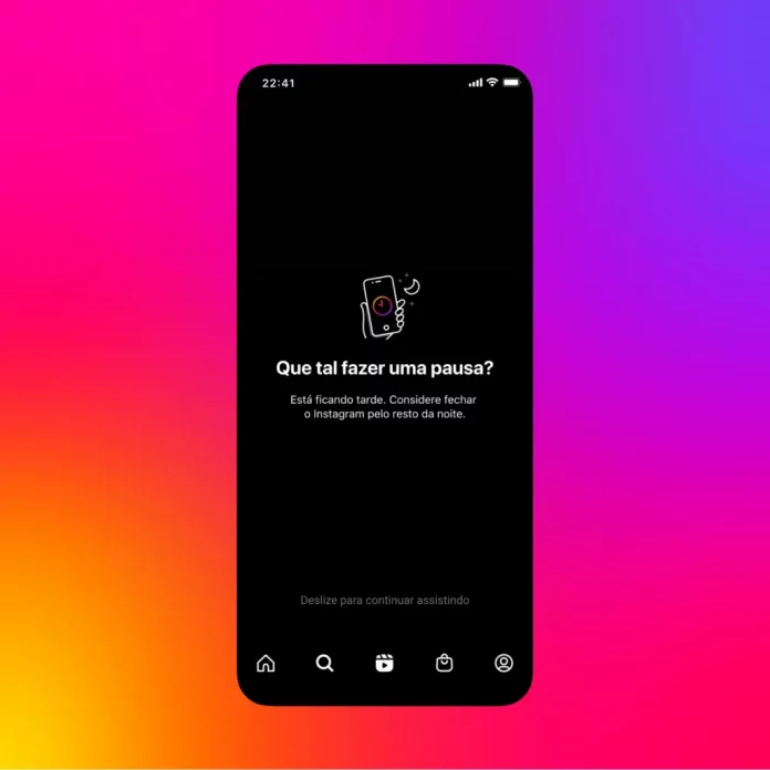 Por se tratar de uma sugestão, se preferir, o jovem pode ignorar a mensagem e continuar usando a rede social até altas horas da madrugada.