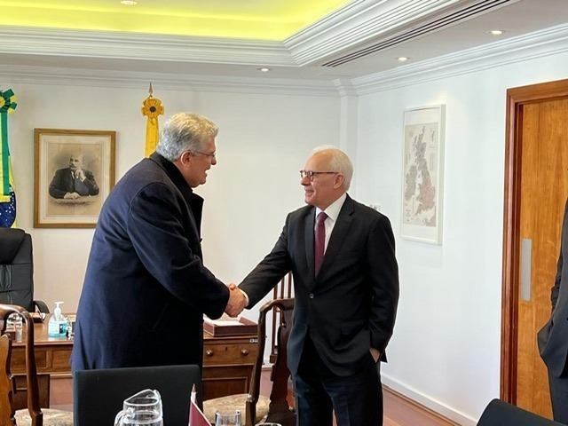 Na manhã desta quarta-feira (22), o presidente da Associação Brasileira dos Produtores e Exportadores de Frutas e Derivados (ABRAFRUTAS) e Assessor Especial do Governo de Pernambuco, Guilherme Coelho, esteve reunido com o embaixador do Brasil no Reino Unido, Fred Arruda, para tratar das relações comerciais bilaterais entre o Brasil e o Reino Unido. O encontro aconteceu na sede da embaixada na cidade de Londres (Inglaterra).