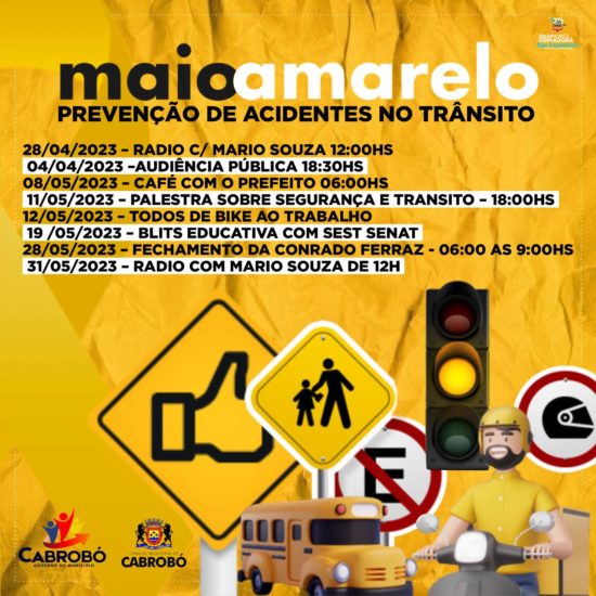 O Maio Amarelo, é o mês de conscientização para redução de acidentes de trânsito, movimento internacional e apartidário, que tem por objetivo chamar a atenção da população para o alto índice de mortes e feridos no trânsito no Brasil, e em todo o mundo e, assim, colocar em evidência o tema da segurança no trânsito. Além de mobilizar toda a nossa sociedade para disseminar conhecimento e trazer ações que garantam essa segurança para o cotidiano.