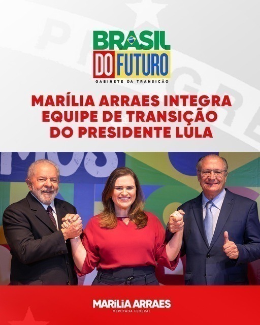 Bastante articulada no Congresso Nacional e extremamente atuante em seu mandato na Câmara dos Deputados, Marília reforçou, novamente, seu compromisso com o presidente Lula. “Fiquei muito feliz com o convite para integrar a equipe de transição do presidente Lula. Sei da responsabilidade que o momento exige, por isso vamos trabalhar muito nos próximos meses para ajudá-lo a recuperar a esperança dos brasileiros e brasileiras que acreditam em um país mais justo“, afirma.