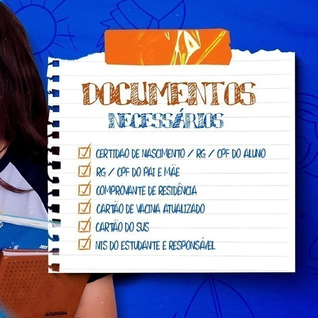 – Certidão de nascimento, RG e CPF do aluno;