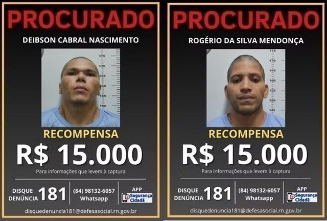 Desde sexta (23), a força-tarefa tem atuado com reforço em Baraúna, na divisa do Rio Grande do Norte com o Ceará. Os policiais chegaram a bloquear a RN-015, que liga Mossoró a Baraúna. O trecho tem uma grande área de mata, inclusive com um parque de tamanho equivalente a 25 mil campos de futebol.