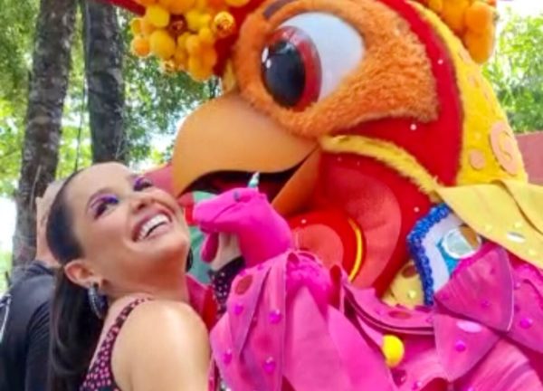 A cantora também interagiu com o Galo do The Masked Singer, que também curte o bloco no Recife.