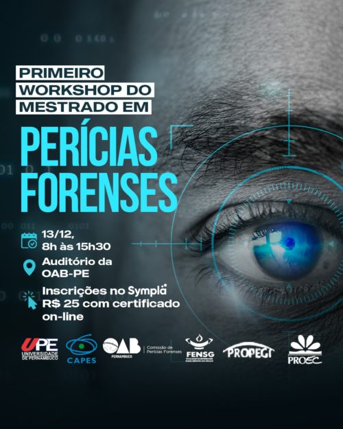 No dia 13 de dezembro, das 8h às 15h30, será realizado no auditório da OAB Pernambuco, no bairro de Santo Antônio, Recife, o “1º Workshop do Mestrado em Perícias Forenses” da Faculdade de Odontologia da Universidade de Pernambuco (FOP/UPE). A inscrição, via Sympla, custa R$ 25, com direito a certificado on-line.