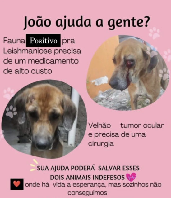 2° Temos o Velhão um cachorrinho de rua que perambula pelas ruas de Belém do São Francisco (no momento ele esta sendo cuidado por uma das voluntárias da ONG) ele foi diagnosticado com um tumor ocular, onde vem sofrendo com fortes dores e pode também vim a óbito sem a sua cirurgia. Valor da cirurgia de velhao R$1.237,50.