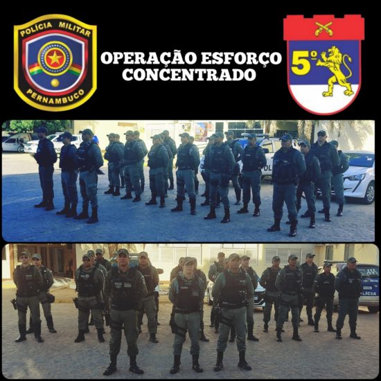 No dia 04 de agosto de 2023, em cumprimento às diretrizes estabelecidas pela DINTER II PMPE, sob o planejamento realizado pelo 5º BPM, foi lançada a OPERAÇÃO ESFORÇO CONCENTRADO no Município de Petrolina, a qual conta com a participação do efetivo do 5° BPM e apoio do 7° BPM, 1ª CIPM e 9ª CIPM, com patrulhamento e abordagens em pontos quentes objetivando o combate à MVI e CVP.