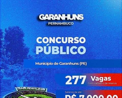 Garanhuns oferece 277 vagas efetivas para 21 cargos e formação de cadastro reserva de Nível Superior de escolaridade.