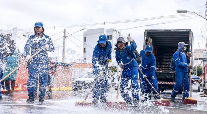 Após quatro dias de festa, enquanto muitos foliões ainda se recuperam do período carnavalesco, a quarta-feira (14) foi o momento da equipe de Limpeza Pública de Petrolina festejar. Ao som de frevo, os agentes de limpeza da Prefeitura recolheram o lixo dos três polos do Carnaval de Petrolina.
