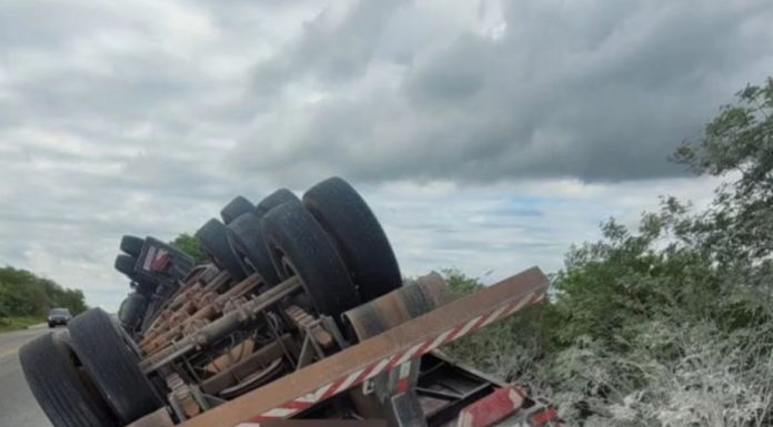 Nesta sexta-feira (12) um acidente foi registrado pela Polícia Rodoviária Federal (PRF) na BR-316 em Salgueiro, nas imediações do acesso ao aterro sanitário municipal, um caminhão carregado de cal tombou na altura do Km-30.