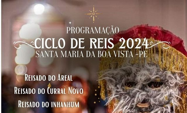 A partir deste sábado, dia 6 de janeiro de 2024, os grupos de reisados de Santa Maria da Boa Vista – PE irão celebrar a tradição dos Santos Reis. De acordo com a tradição cristã, a celebração refere-se à aparição dos reis magos do oriente no local de nascimento de Jesus Cristo, com o objetivo de prestar culto e...