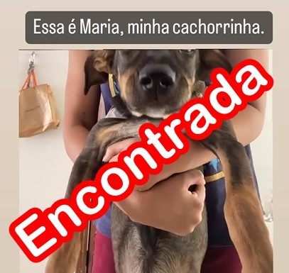 A dona da Cachorrinha Maria que estava desaparecida desde o meio dia deste domingo (17), avisa a todos que a mesma já foi localizada e está em sua casa. A mesma aproveita para agradecer a todos pelo apoio, em especial a quem se juntou a ela na busca por Maria.