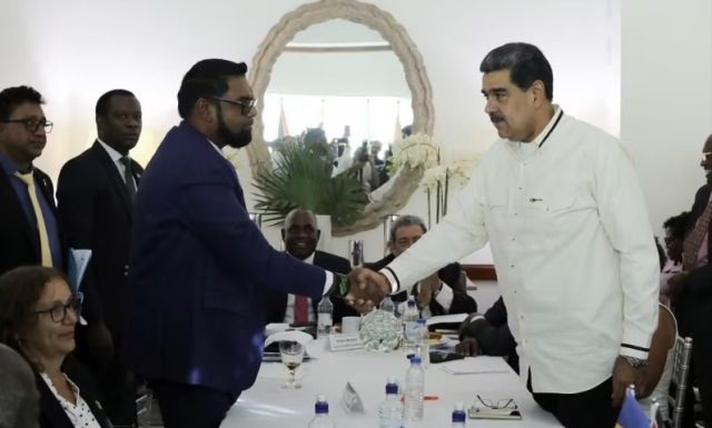O ditador da Venezuela, Nicolás Maduro, e o presidente da Guiana, Irfaan Ali, reuniram-se nesta quinta-feira (14) pela primeira vez para tentar estabelecer um diálogo sobre a disputa pelo território de Essequibo.