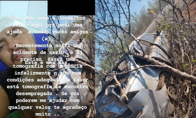 O jovem Josuelton, morador do Distrito de Caraíbas, município de Santa Maria da Boa Vista, sofreu um grave acidente automobilístico quando trafegava pela BR-428 próximo a cidade de Orocó no dia 1º de dezembro. Agora o mesmo está impossibilitado de trabalhar, precisa urgentemente fazer uma tomografia e não está em condições financeira.