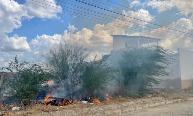 Um incêndio em vegetação foi registrado na tarde desta quinta-feira (02/11) na Avenida Mozenir Araújo de Sá, localizada no Centro de Cabrobó. As chamas se alastraram rapidamente devido às condições secas do local.