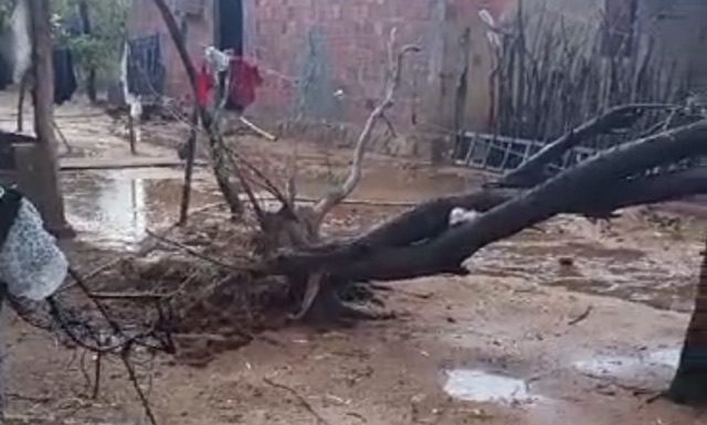 Uma moradora relatou o impacto do fenômeno em sua propriedade: "Tá chovendo é granizo aqui no Jatobá II, meu Deus do céu, o vento esbagaçou a minha área....