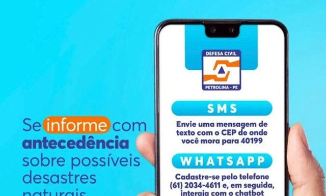 A Defesa Civil de Petrolina presta um serviço gratuito de envio de mensagens de alerta de riscos desastres e emergências. É uma forma fácil de receber boletins de avisos e alertas extremamente importantes. Além do mais, permitem que os cidadãos estejam preparados e possam redobrar a observação em suas comunidades.